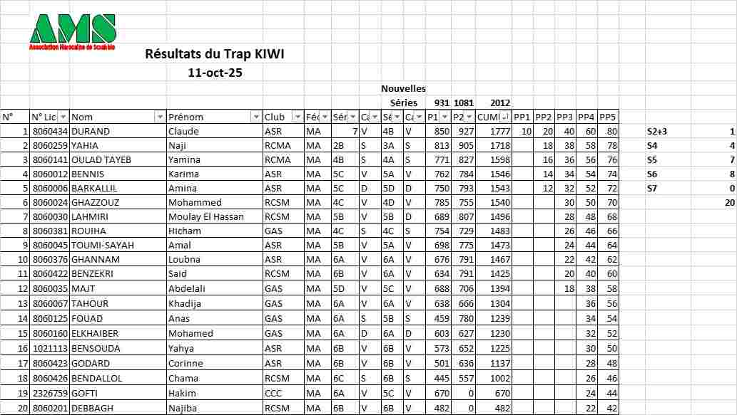 RESULTATS DU TRAP KIWI
